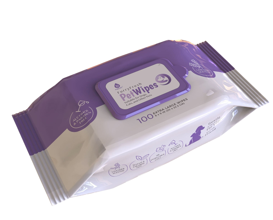 Extra-large wipes for paws, coat & face.